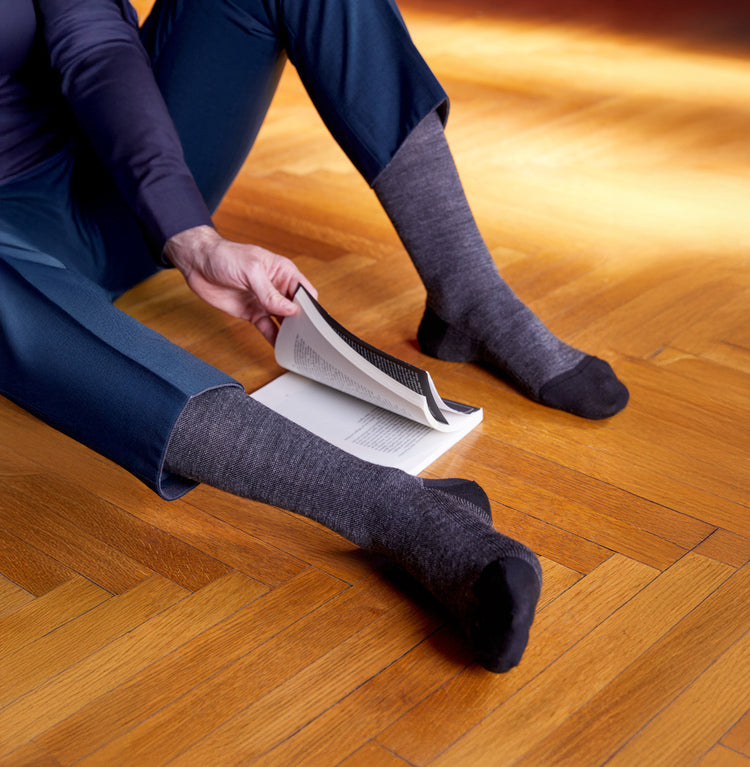 SOCKS LUPO. WOOL BLEND, SOLID COLOR, CHARCOAL.