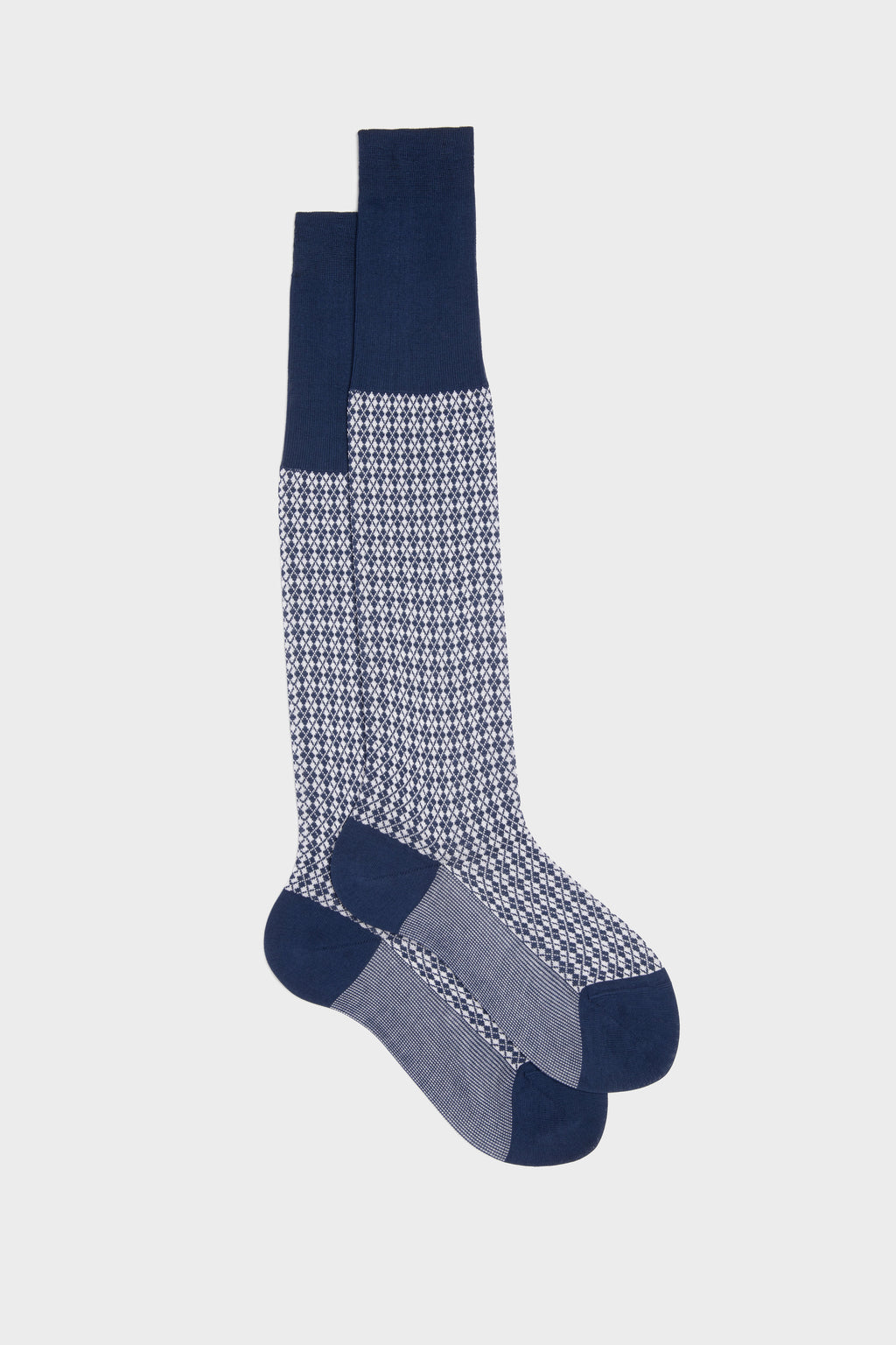 Perfect fit sized socks, Made in Italy from Egyptian extra-fine cotton. Light, breathable, and cool—ideal for the summer season. The ILARIO model showcases a geometric pattern inspired by the classic diamond inlay, reimagined with a minimal jacquard touch.